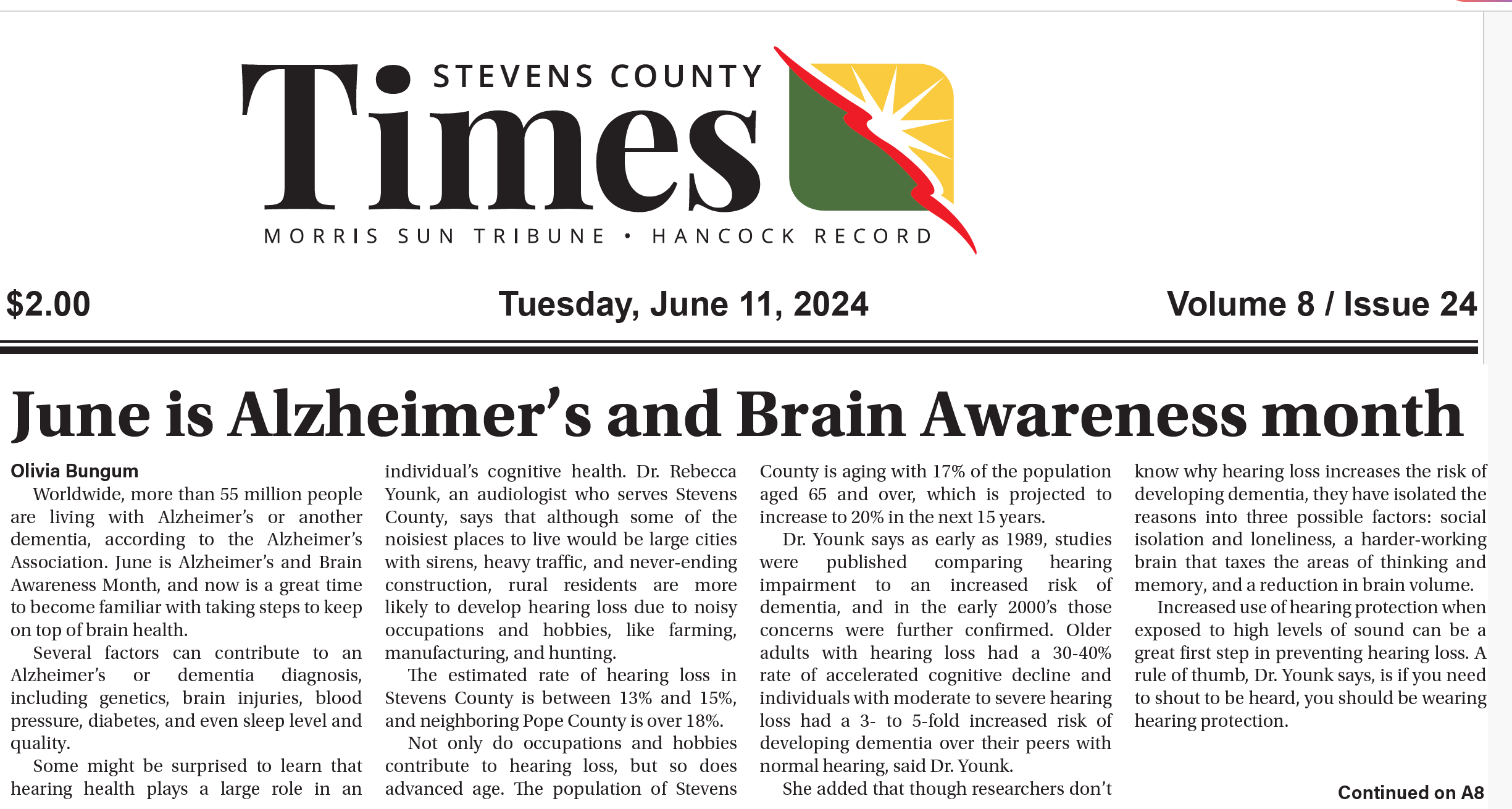 Dr. Younk spoke to the Montevideo American News about hearing loss and dementia
